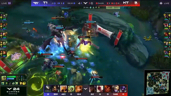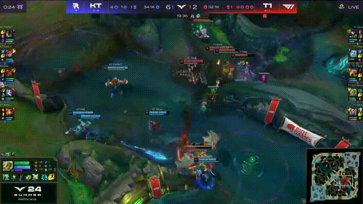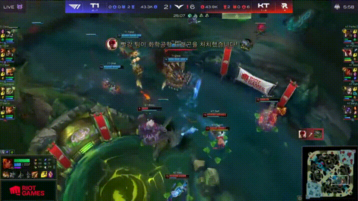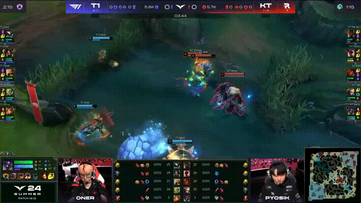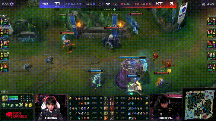 LCK:BeryL牛头果断先手,KT河道团0换2击杀T1中辅