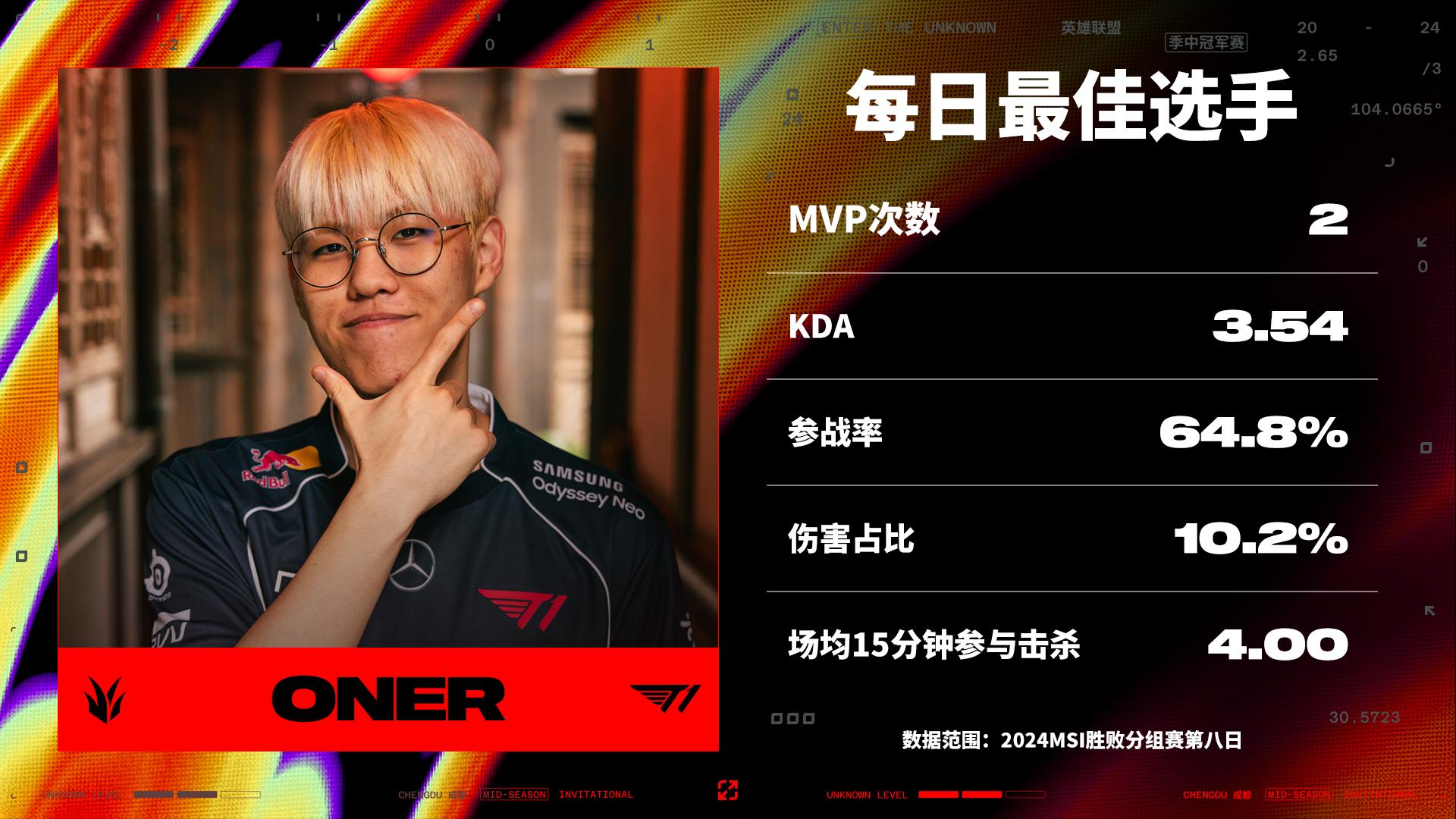 MSI胜败分组赛第八日最佳选手:T1.Oner