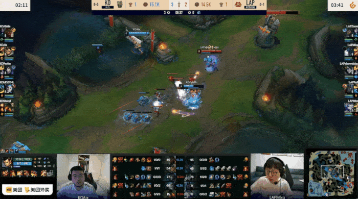 K.O中路突然开团击杀三人,MLXG独自断线勉强维持