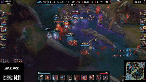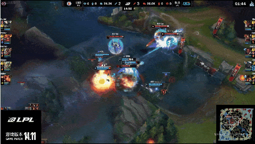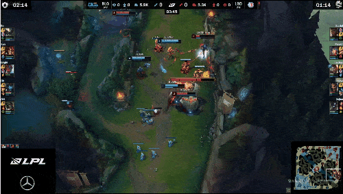 LPL:河道双方爆发团战,双方打出一换一拉开
