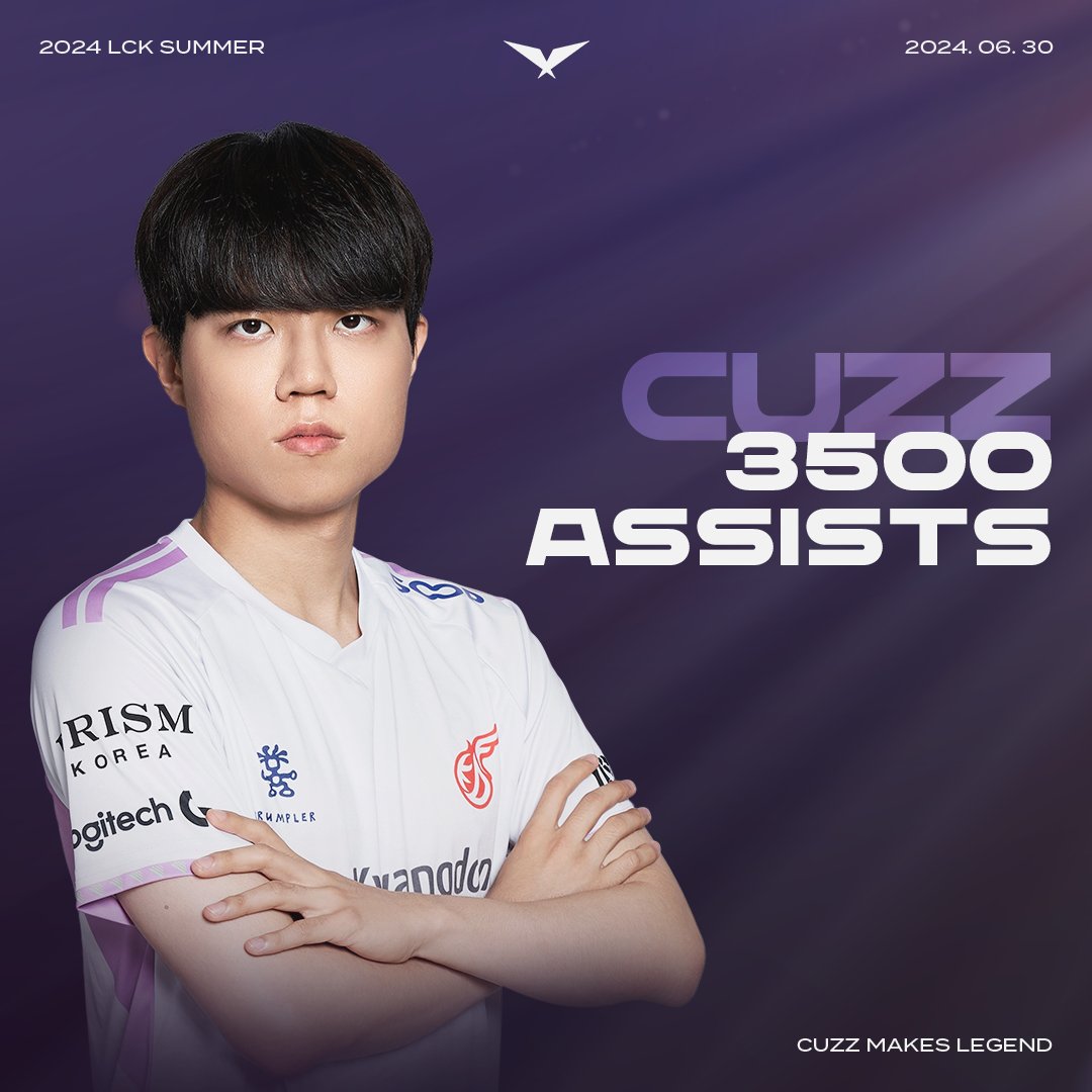 KDF.Cuzz达成LCK生涯3500助攻成就,位列LCK助攻榜第11名