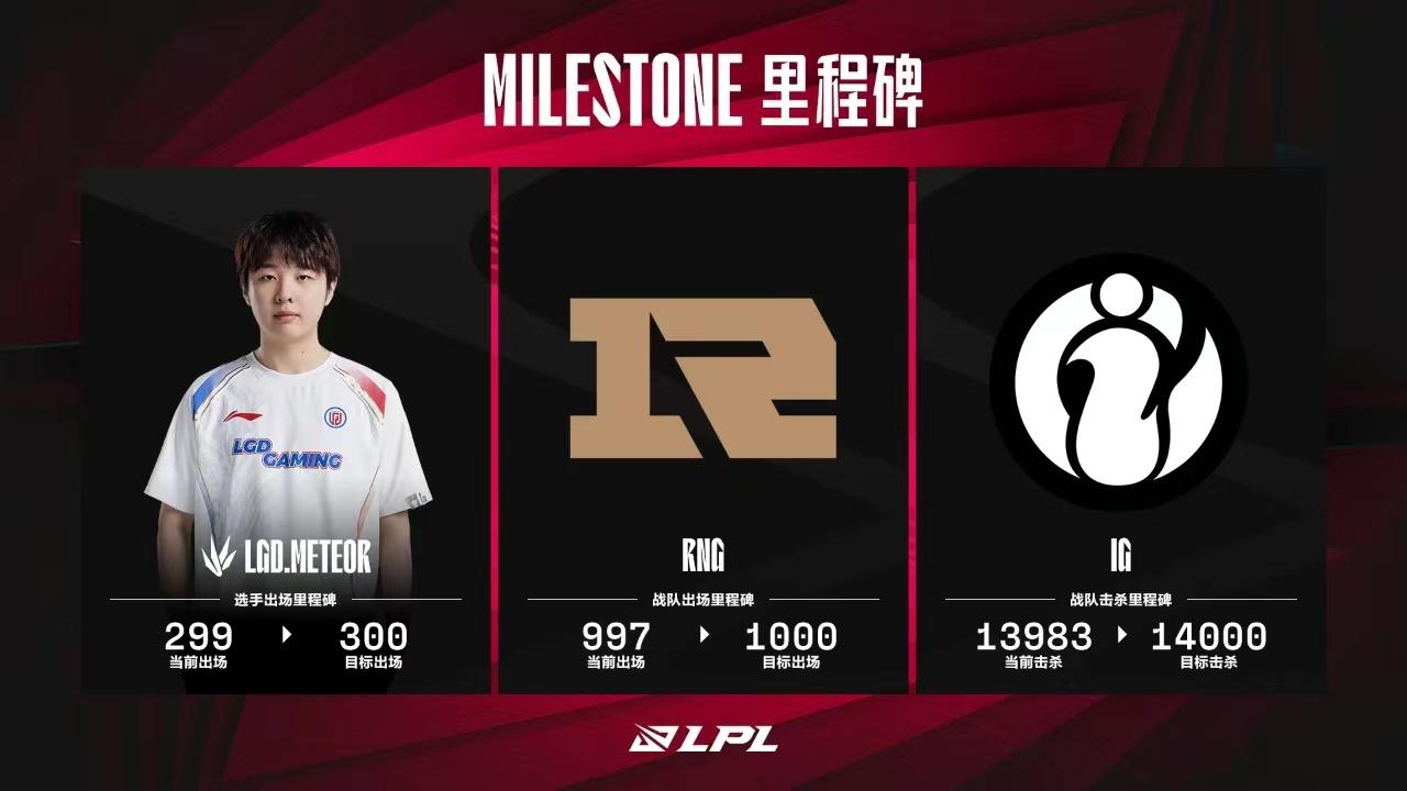 今日数据里程碑预告:RNG 距离1000出场成就仅差3次出场