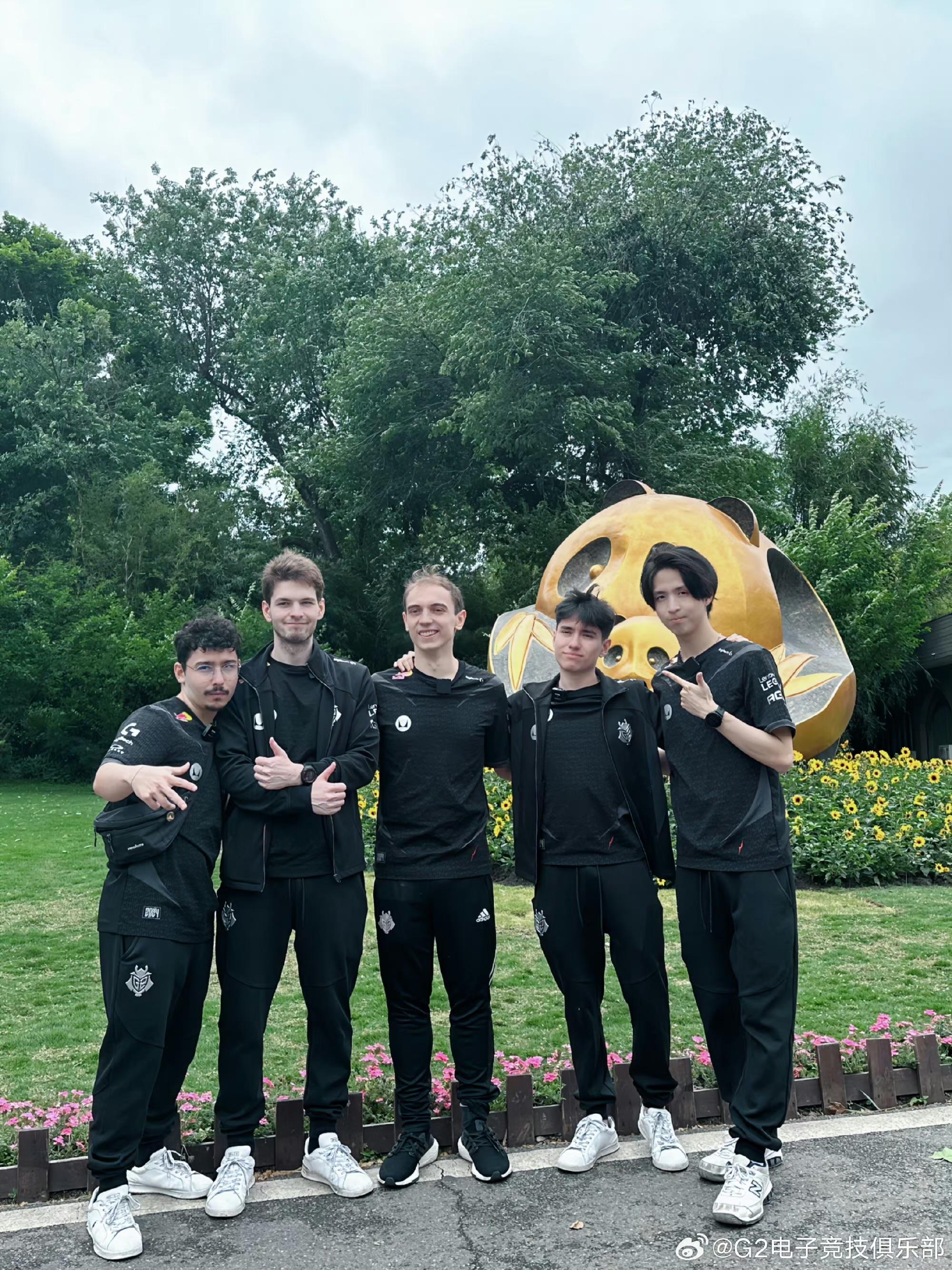 G2晒战队选手合影并配文:Hi~ 🐼🐼🐼🐼🐼