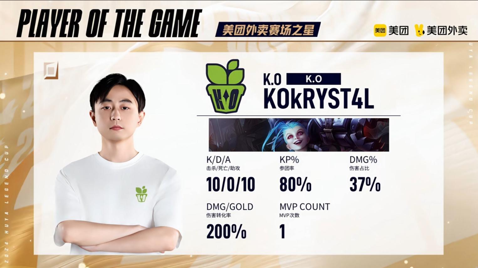KRYST4L金克丝砍下10/0/10战绩,拿到LAP对战K.O的MVP