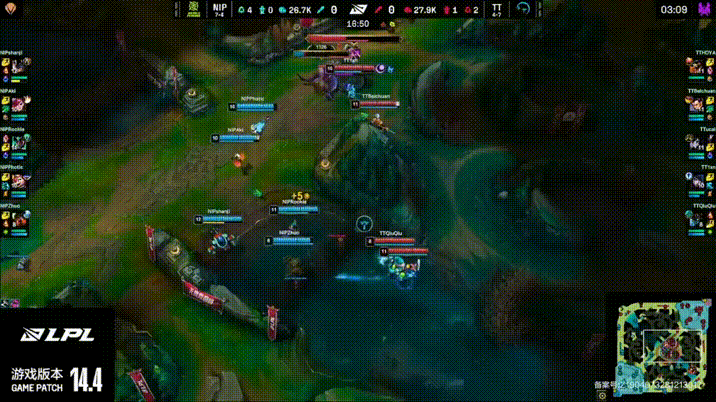 LPL:17分钟终破零!Photic斯莫德拿一血,NIP和TT河道1换1