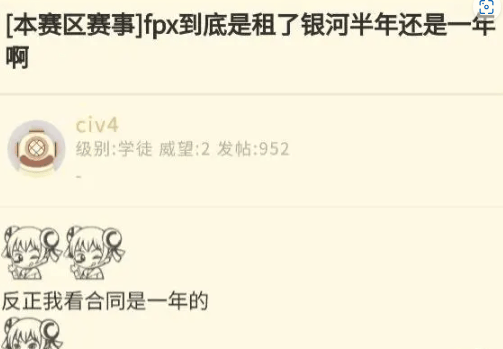 春丽回复银河合同问题:银河与FPX是一年合同