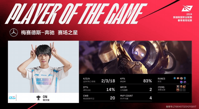 On机器人砍下2/3/18战绩,拿到FPX对阵BLG首局比赛MVP
