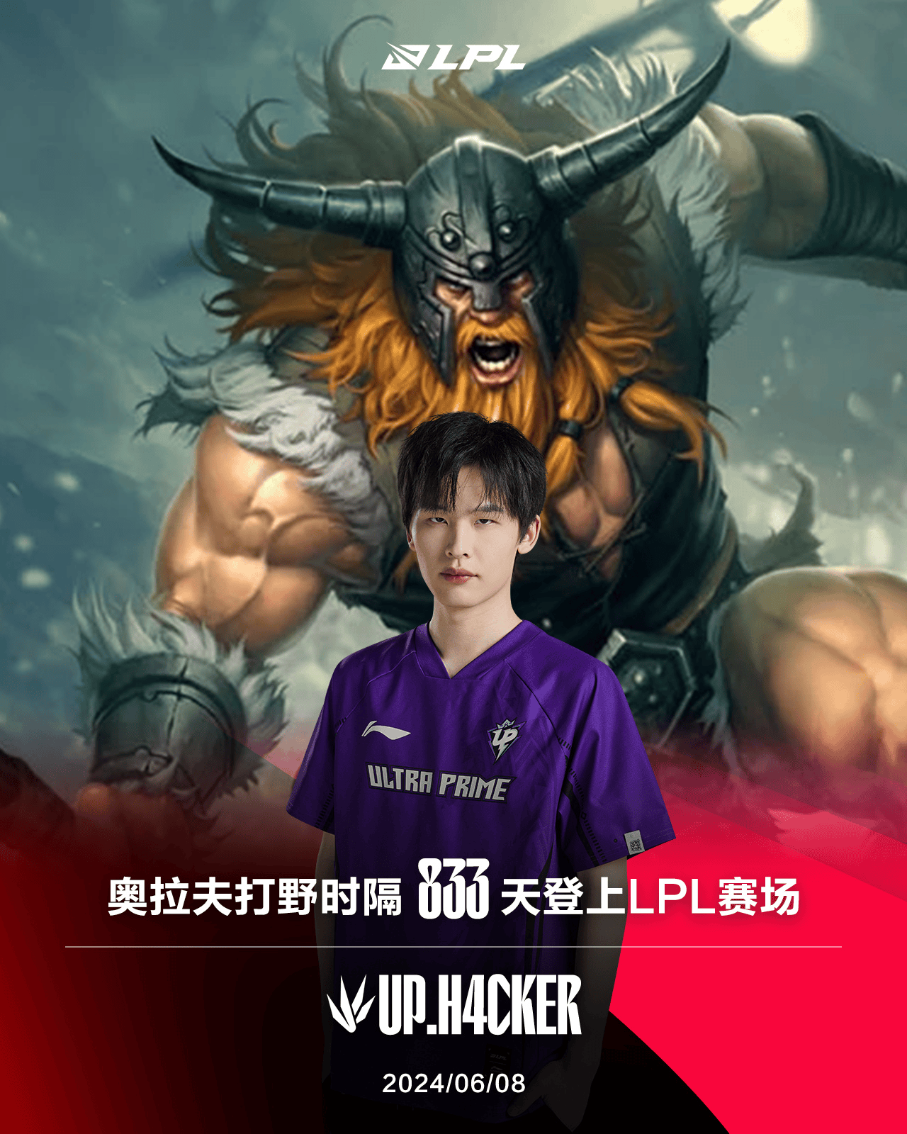 H4cker选出奥拉夫打野,奥拉夫打野时隔833天再次LPL登场