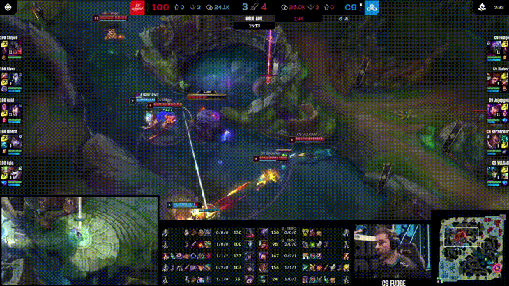 北美果子哥!100T打野千珏自己逃生后点果子送自家辅助去死
