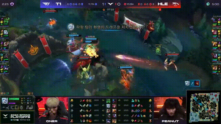 LCK:小龙团Oner惩下小龙但T1团战溃败,HLE轻松打出0换3