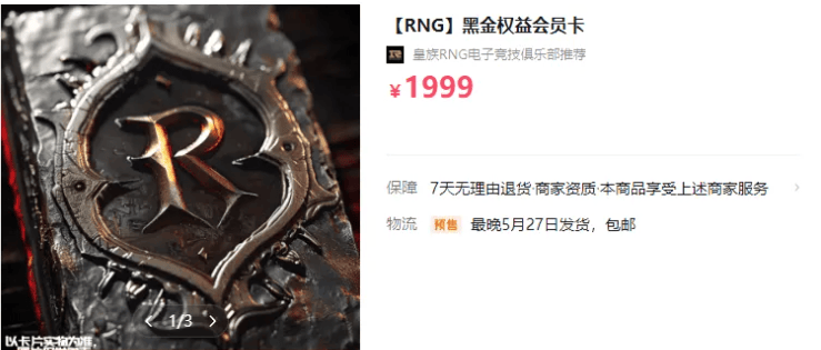 RNG卖黑金权益会员年卡1999,限量100份1秒售罄
