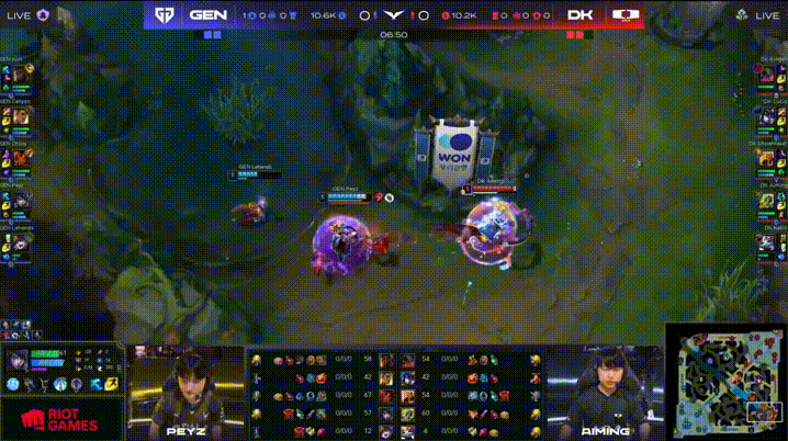 LCK:GEN四越二强杀Aiming泽丽,但Peyz厄斐琉斯被塔打死