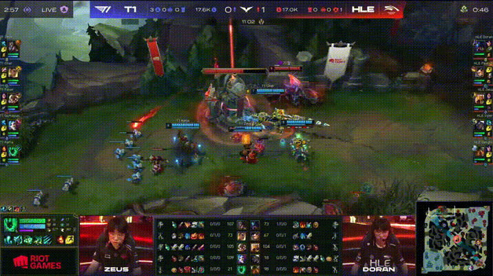 LCK:Doran挖掘机被打残HLE野辅强行开团被GEN0换2拿下大龙
