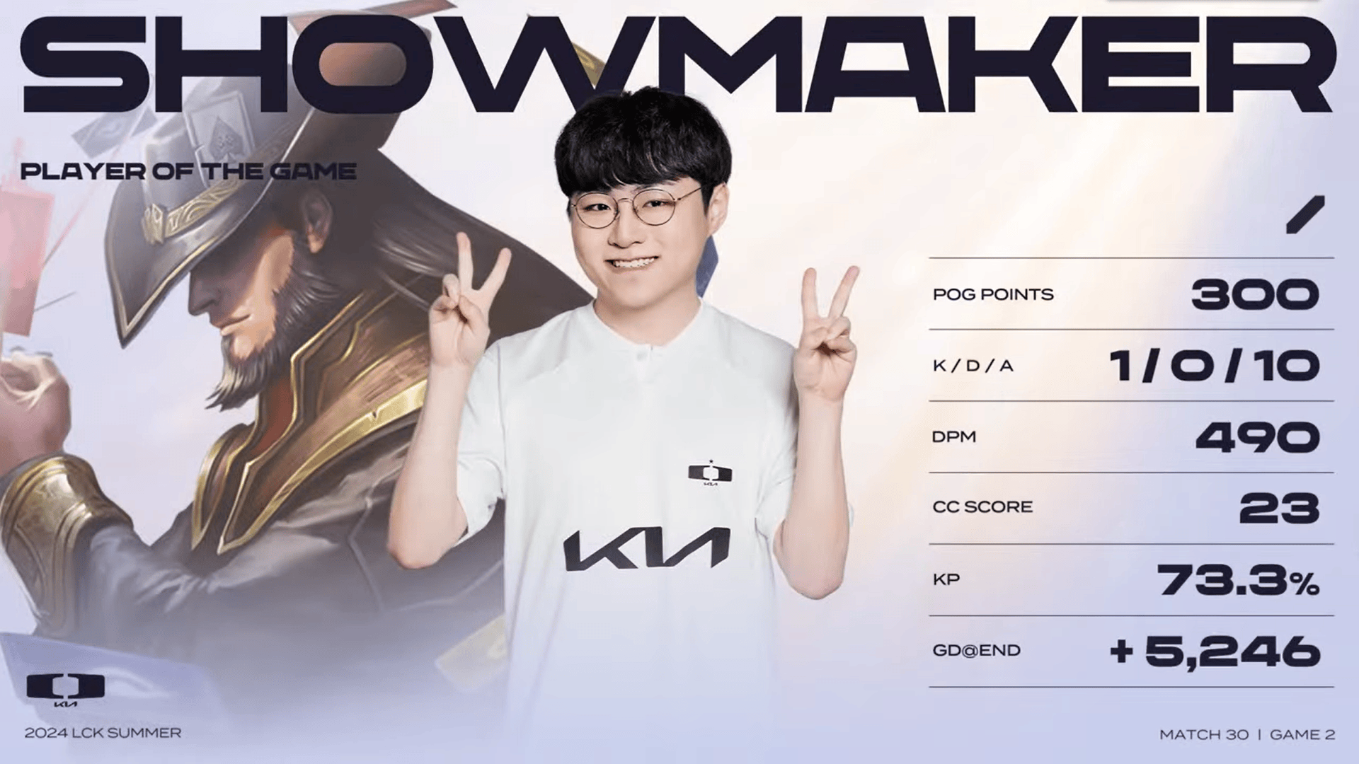 ShowMaker卡牌砍下1/0/10的战绩,拿下DK对阵KDF次局MVP