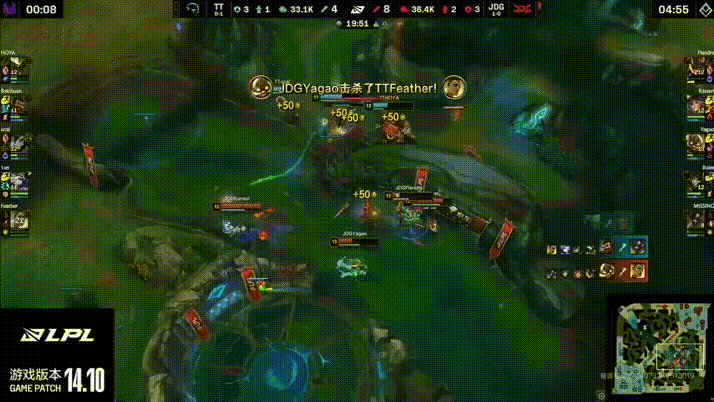 HOYA蝎子团战连续发力,TT小龙团2换5团灭JDG!