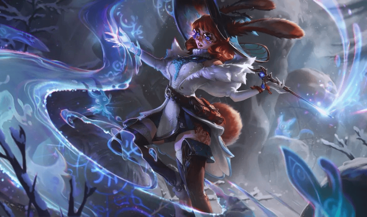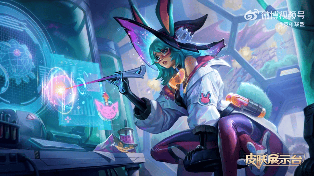 幻灵战斗兔-阿萝拉皮肤展示:回城时,阿萝拉脚下浮现Q版灵兔标记