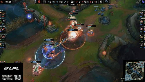 LPL:收割时间!金克丝团战输出拉满,拿下双杀