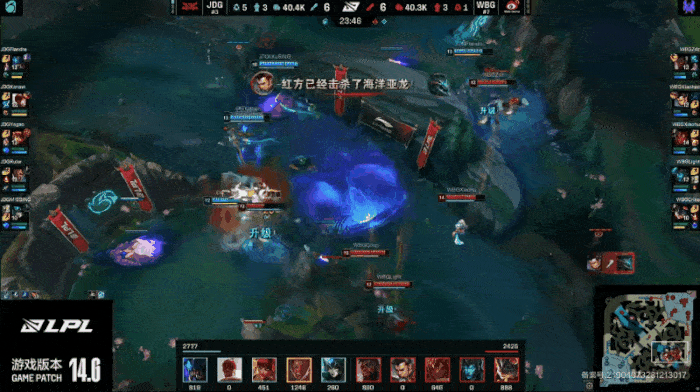 LPL:小龙团安妮大招开团,WBG抢到小龙但阵亡四人