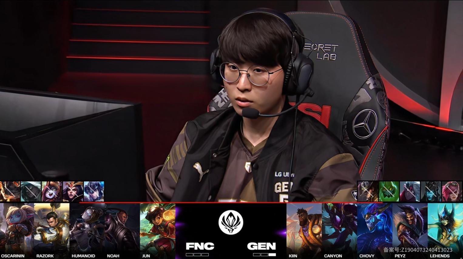 Kiin奎桑提砍下5/4/8战绩,拿到GEN对战FNC第二局MVP