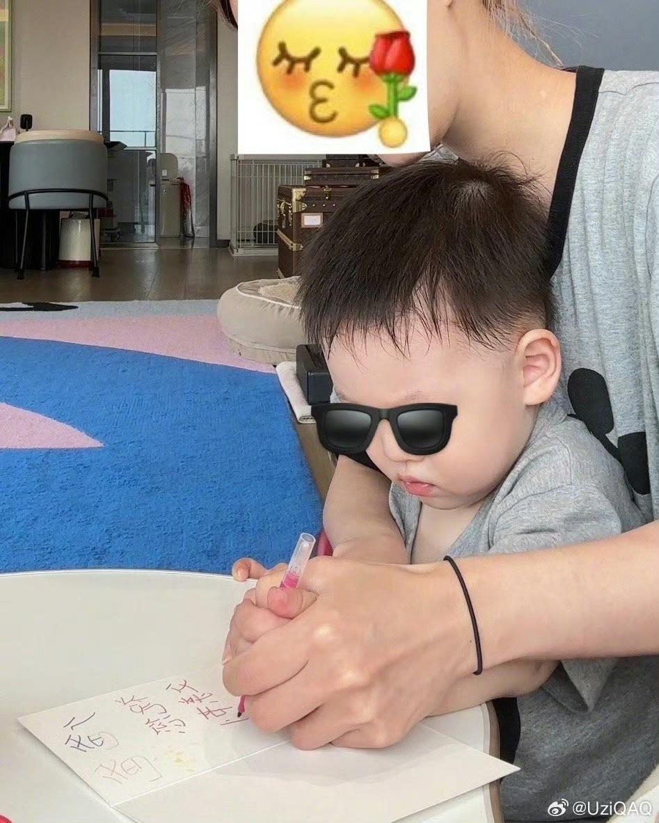 Uzi晒家庭合影:父亲节很快乐,谢谢小枣给我选的花