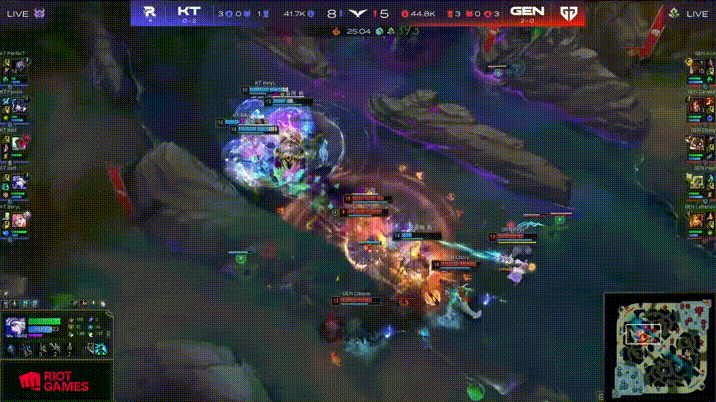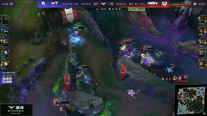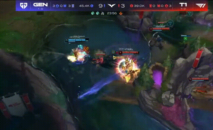 GEN vs KT首局集锦:KT大劣势连续反击,GEN稳定团战先下一城