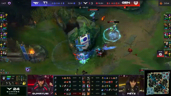 LCK:Peyz泽丽翻墙一打五被秒,KT强行反打被GEN1换4一波