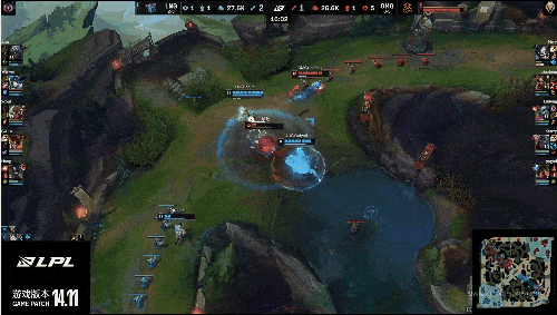 LPL:Zika鳄鱼在野区被抓到,OMG顺势推掉下二塔