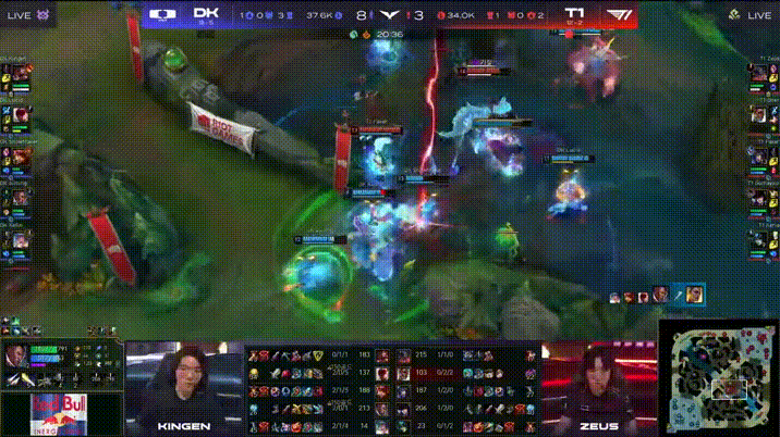LCK:Zeus剑魔残血反手带走DK中辅,T1被动接团3换3DK