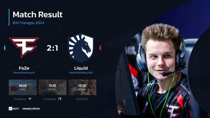 CS2 IEM成都:拒绝让一追二,FaZe 2-1 Liquid挺进四强
