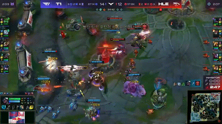 LCK:HLE追残血Keria未能击杀,T1果断反打0换3拆掉下路高地
