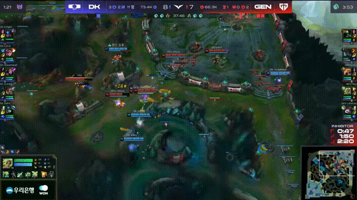 LCK:ShowMaker妖姬带队偷家成功!DK力克GEN拖入第五局!