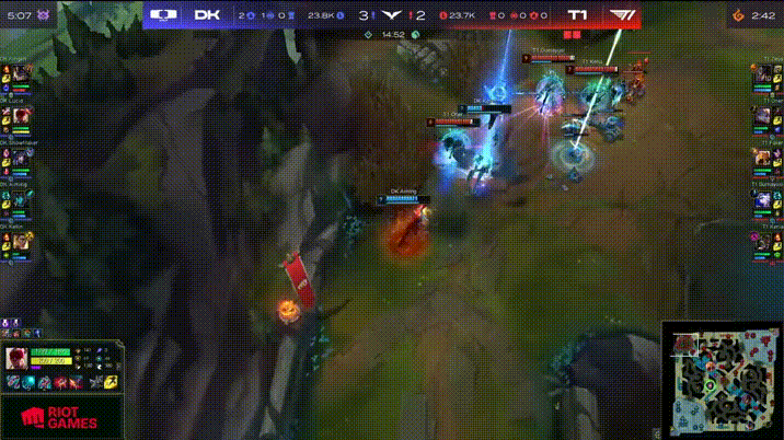 T1 vs DK首局集锦:Faker发条定海神针,T1首局力克DK