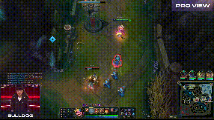 LCK:BuLLDoG小炮一打二面对T1中野先手成功残血逃生