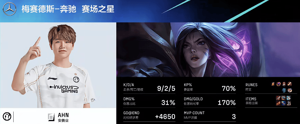 Ahn卡莎打出9/2/5战绩,拿下IG对阵UP第二局MVP