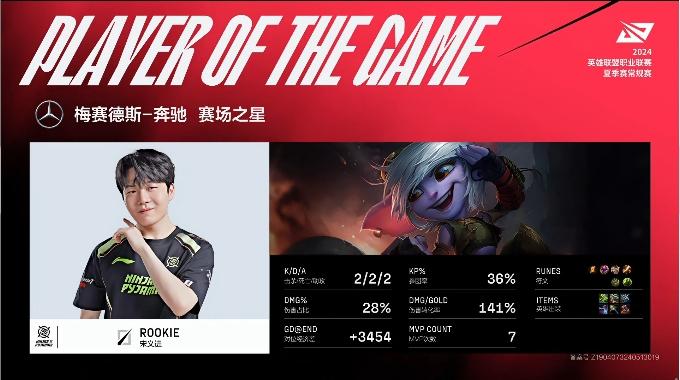 Rookie小炮打出2/2/2战绩,拿下NIP对阵UP首局MVP