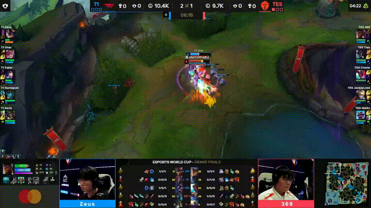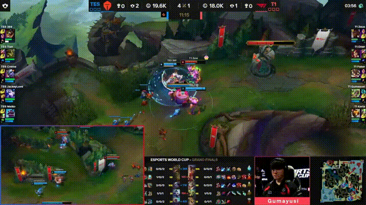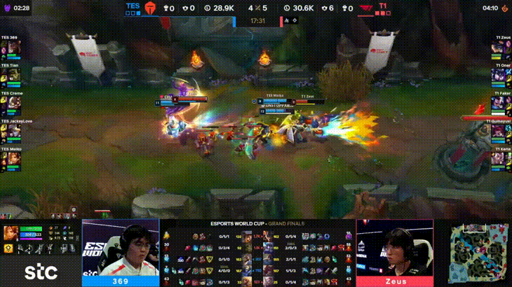 EWC:Zeus奎桑提闪现R被断,Faker支援上路反被TES打出0换2