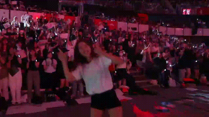 KT让一追二战胜T1后,现场KT粉丝激动庆祝比赛胜利