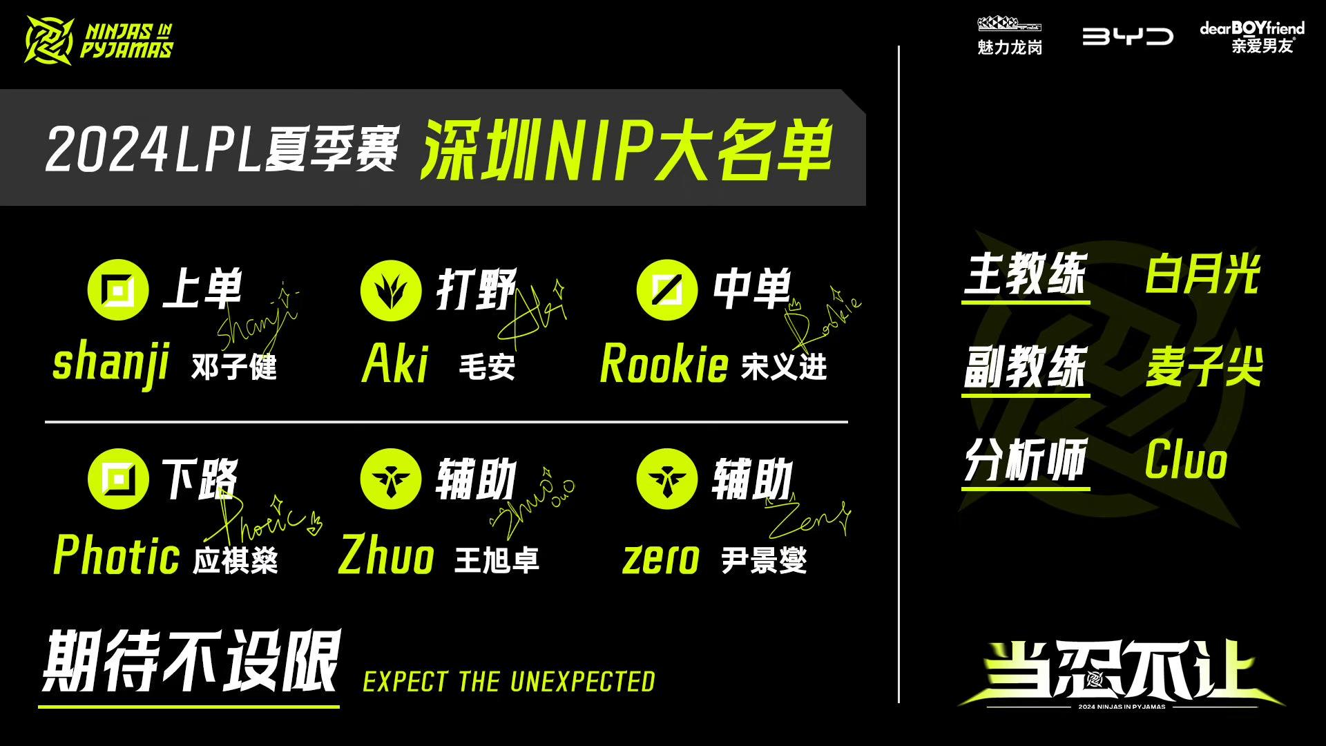 NIP夏季赛大名单:选手无人员变动,白月光担任主教练