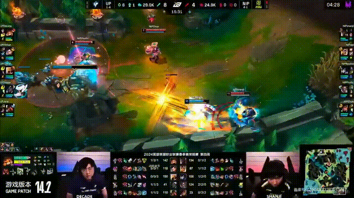 LPL:NIP三打一全被反杀!Decade纳尔一打三全杀完淡定嚼糖