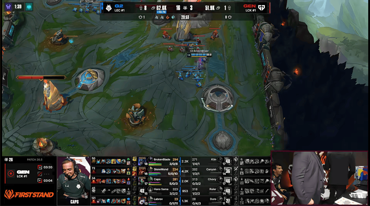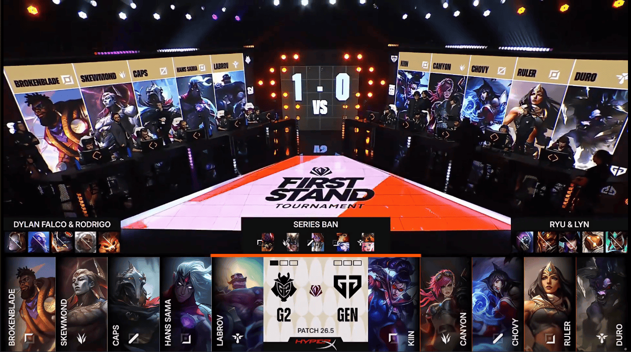 GEN对阵G2第二局BP:kiin选用薇恩对阵BrokenBlade奎桑提