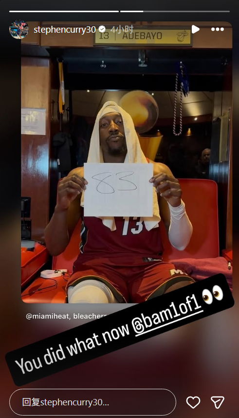库里更新ins动态致敬阿德巴约83分:你刚刚做了什么👀