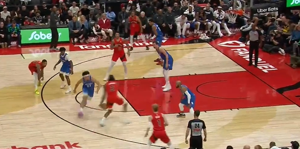 杜兰特杀入禁区双手隔扣马特科维奇,火箭再次取得领先