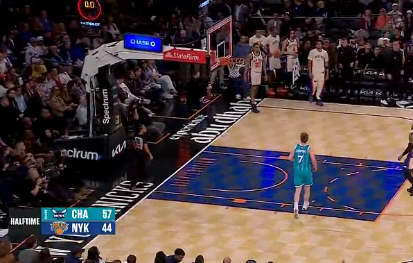 半场:尼克斯以44-57落后黄蜂,麦克布莱德18分鲍尔12+5+5