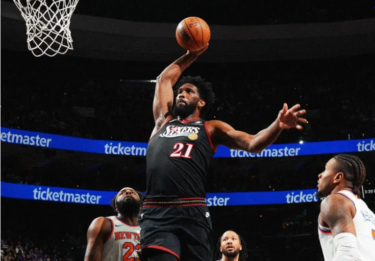 尼克斯客场险胜76人,恩比德豪华数据难救主