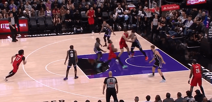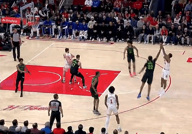 米勒投篮时肘部打到理查德面部,随后被判普通进攻犯规