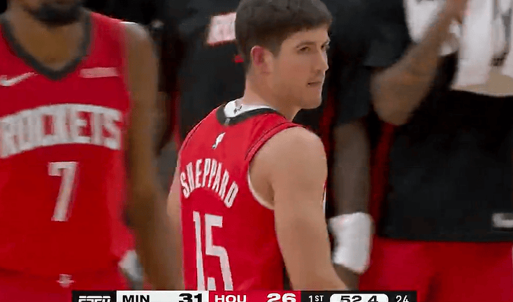 谢泼德全场10投3中,三分3中1得到7分2篮板3助攻1抢断