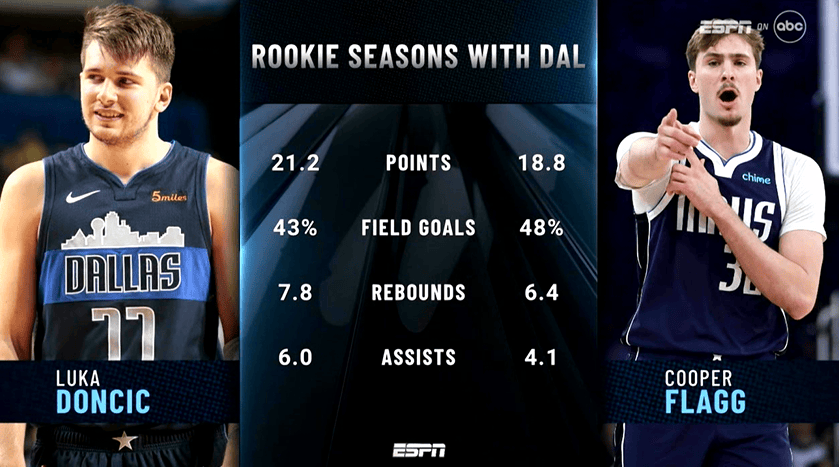 东契奇弗拉格新秀赛季数据对比:21.2+7.8+6.0/18.8+6.4+4.1
