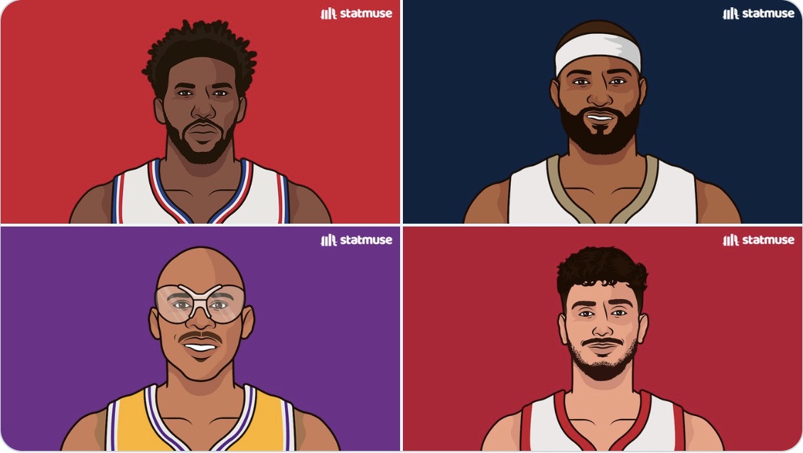 StatMuse:申京单赛季场均20/5/5/1/1,中锋位置历史第四人