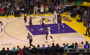 艾顿泰山压顶双手暴扣,首节出战5分钟得到6分2篮板