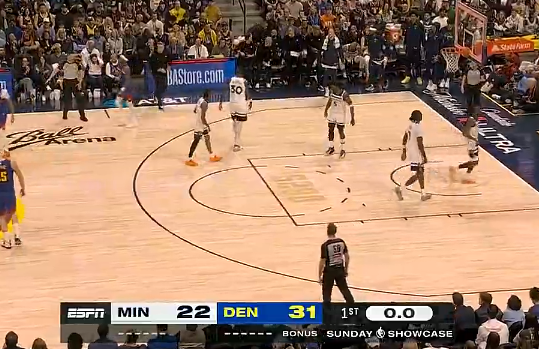 掘金首节比赛以31-22领先森林狼,约基奇单节砍下13分4助攻